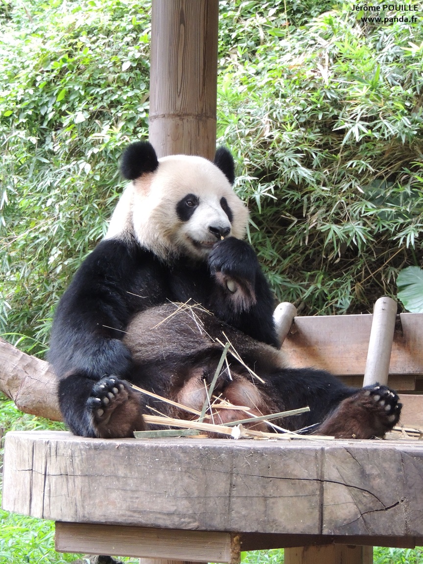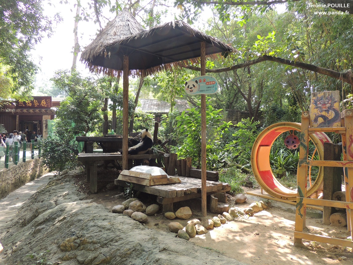 Le secteur principal qui héberge les pandas est dénommé Panda village. A celui-ci s'ajoute un autre secteur, plus au sud, où les pandas ne peuvent être aperçus que depuis la télécabine. Dans ce secteur sont placés les pandas les plus sensibles au bruit ou les plus âgés.