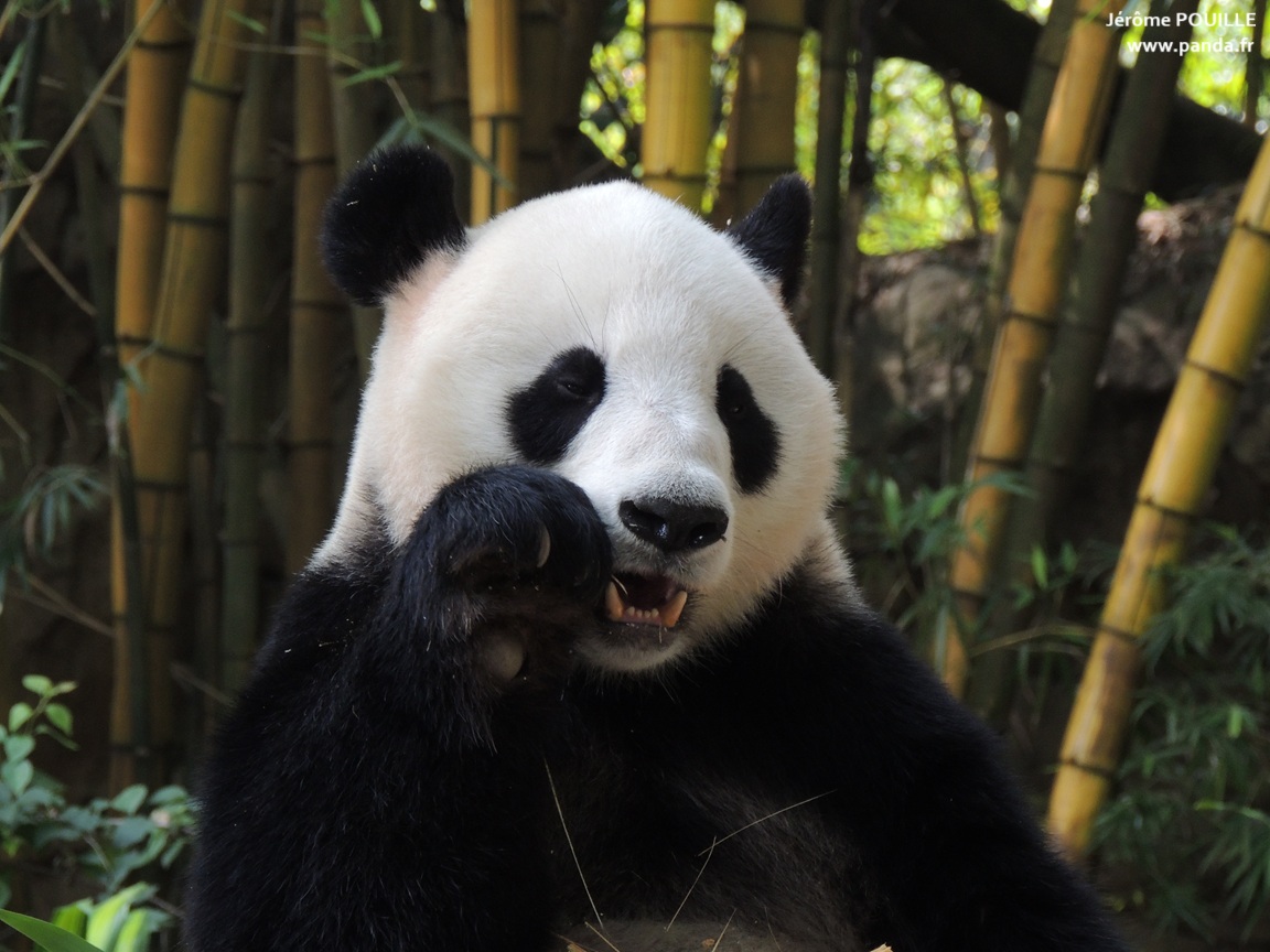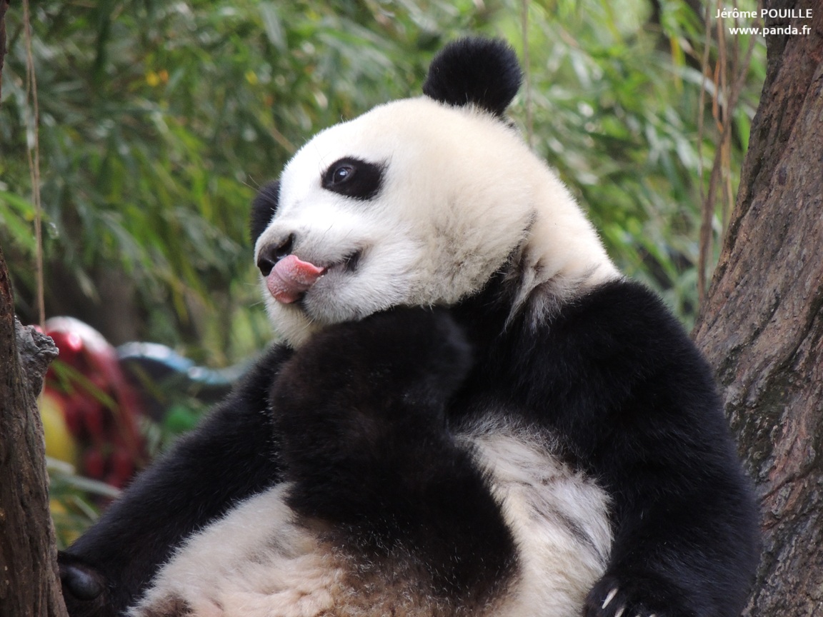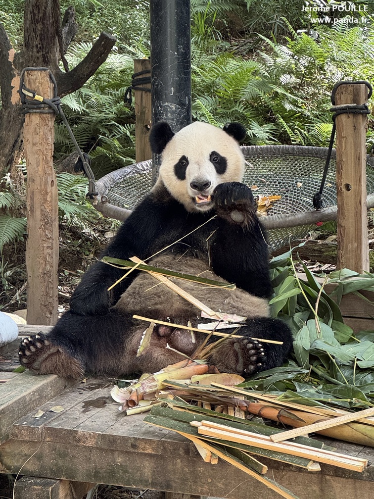 Ai Ai est facilement identifiable avec son oreille gauche plus petite et avec un morceau sans poils - 19 octobre 2025 - © Jérôme POUILLE