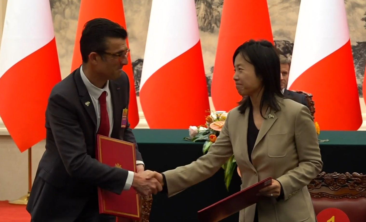 L'extrait de la cérémonie lors de laquelle Rodolphe Delord a été invité à signer la lettre d'intention avec son partenaire chinois la CWCA représentée par sa Secrétaire générale
