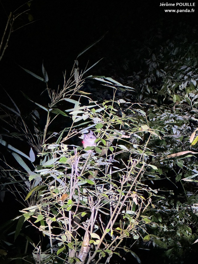 Quelques-unes des observations nocturnes, dans l'ordre : un porc-épic, un rongeur et une civette palmiste à masque - 27 octobre 2025 - © Jérôme POUILLE
