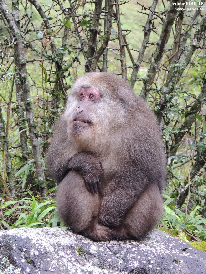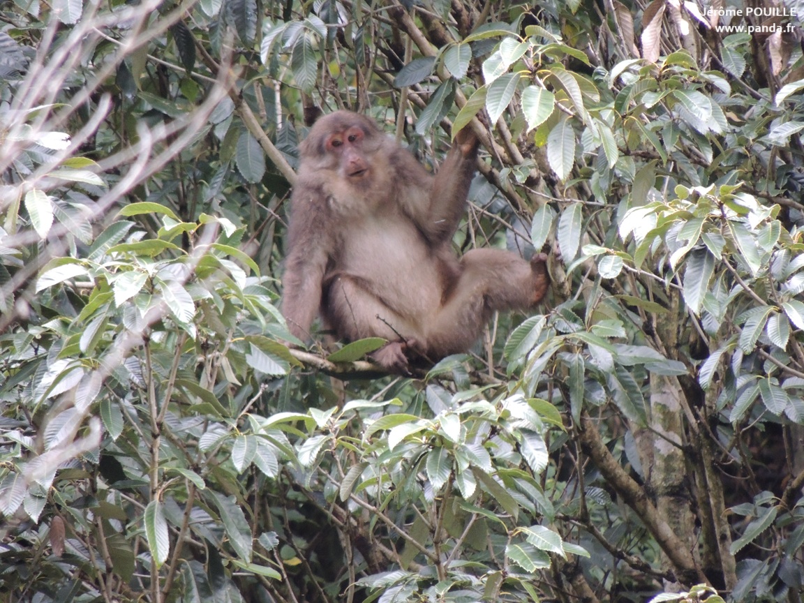 Les macaques du Tibet (Macaca thibetana) photographiés ci-dessus sont l'espèce de macaque la plus importante de la réserve ; les macaques rhésus (Macaca mulatta) sont moins nombreux et ne vivent que dans le secteur de Caijiaba - 29 octobre 2025 - © Jérôme POUILLE