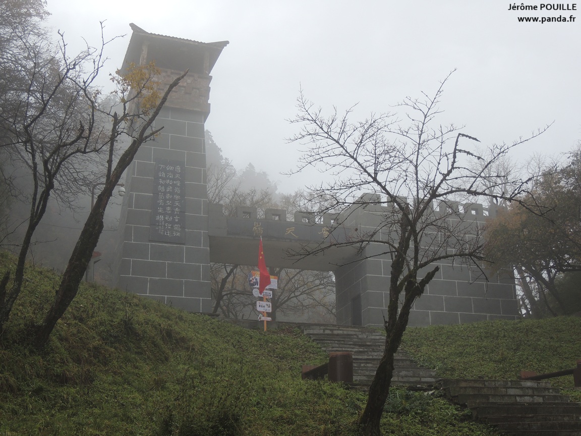 Le sommet de Motianling est matérialisé par cette porte. Derrière se trouve la province du Gansu (et sa réserve naturelle de Baishuijiang), et devant le Sichuan - 29 octobre 2025 - © Jérôme POUILLE