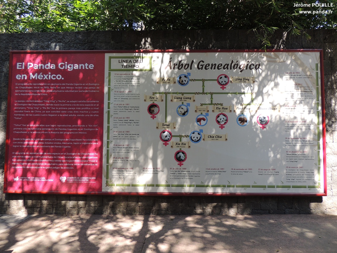 L'arbre généalogique des descendants de Pe Pe et Ying Ying est fièrement affiché près de l'enclos de Xin Xin, aujourd'hui l'unique résidente de Mexico - © Jérôme POUILLE