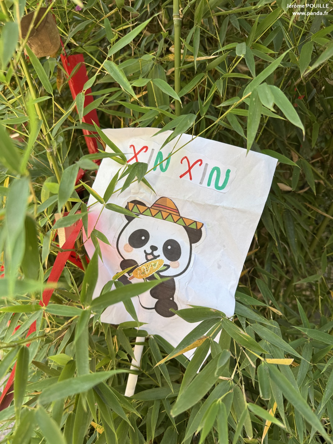 Pour les célébrations de ses 35 ans, les visiteurs étaient invités à déposer des messages et des dessins pour Xin Xin. Ils sont affichés dans les bambous près de son enclos - 14 novembre 2025 - © Jérôme POUILLE