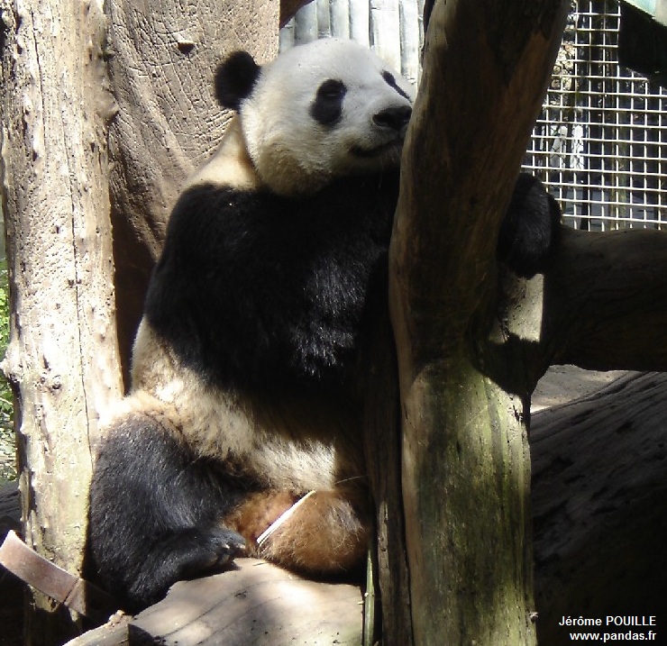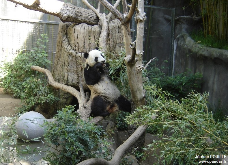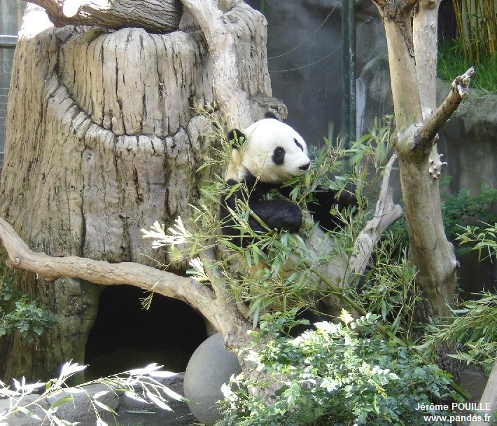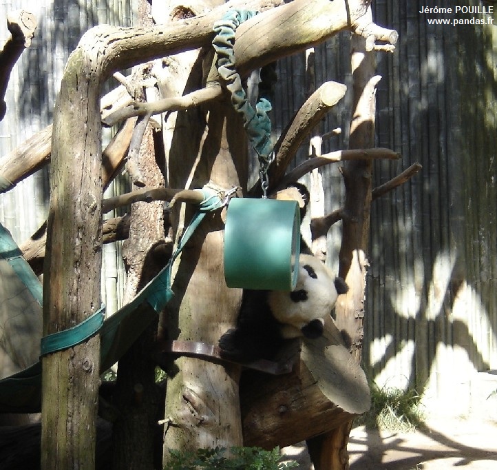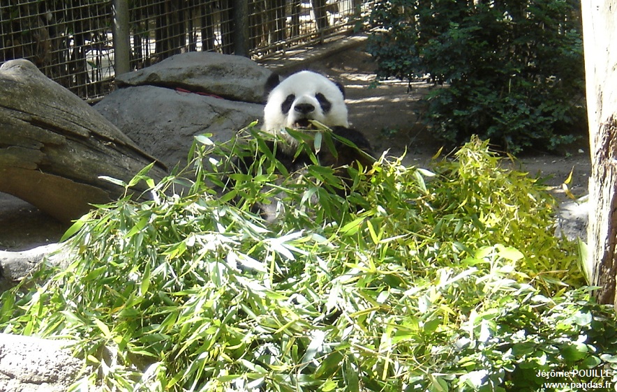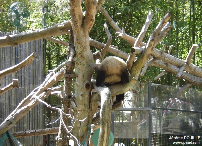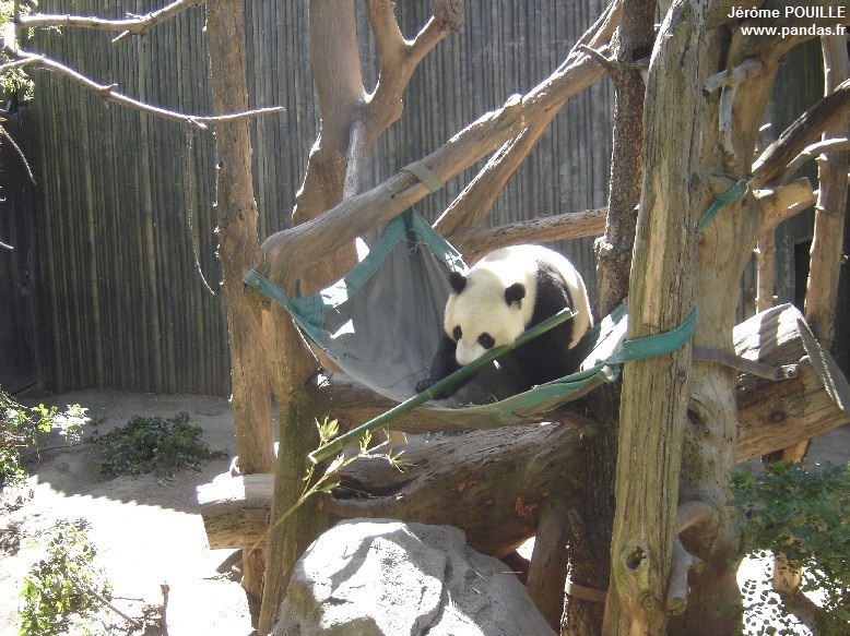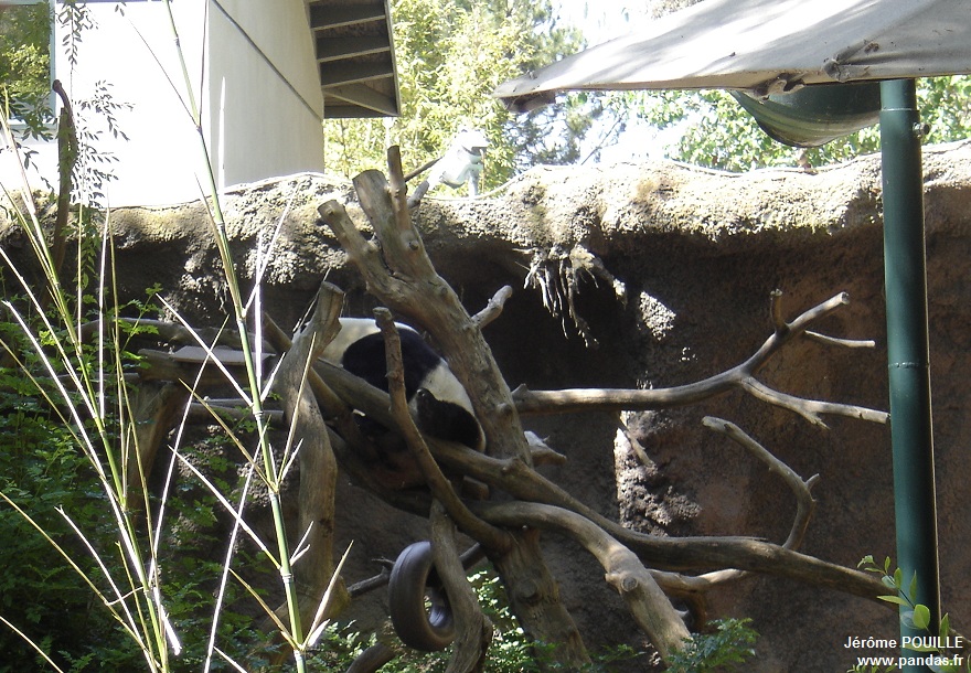Le jour de ma visite, ce sont Gao Gao et Yun Zi qui occupaient les deux enclos accessibles ; Bai Yun ayant été soustraite de la vue du public le samedi 12 mai précédant pour être au calme, les soigneurs soupçonnant qu'elle soit enceinte suite à son accouplement naturel avec Gao Gao en avril.