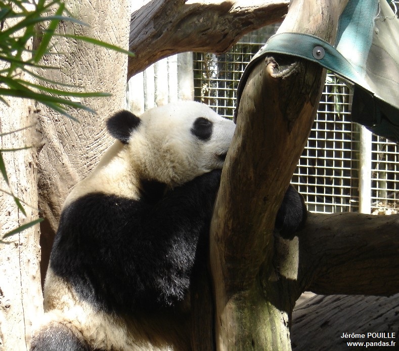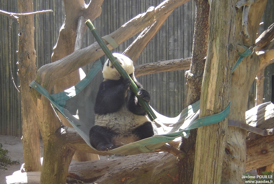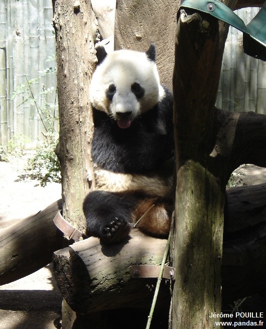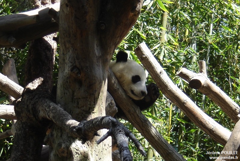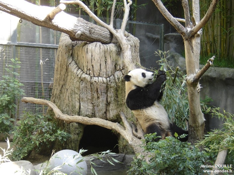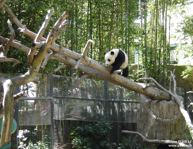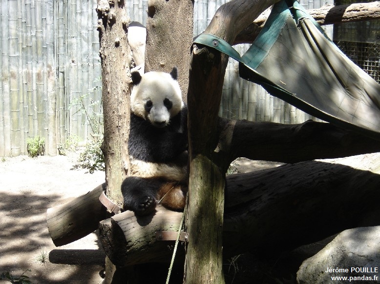 Le jour de ma visite, ce sont Gao Gao et Yun Zi qui occupaient les deux enclos accessibles ; Bai Yun ayant été soustraite de la vue du public le samedi 12 mai précédant pour être au calme, les soigneurs soupçonnant qu'elle soit enceinte suite à son accouplement naturel avec Gao Gao en avril.