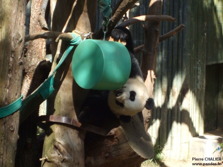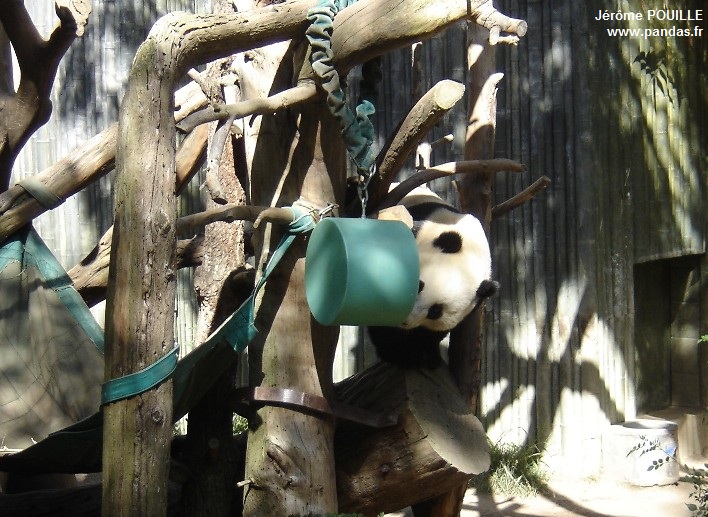 Yun Zi dispose de plusieurs objets d'enrichissement : une balle, un miroir balancier et un hamac - 27 mai 2012 - Photos © Jérôme Pouille
