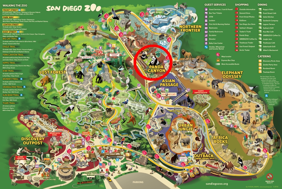 Plan du zoo de San Diego - L'installation des pandas est cerclée en rouge