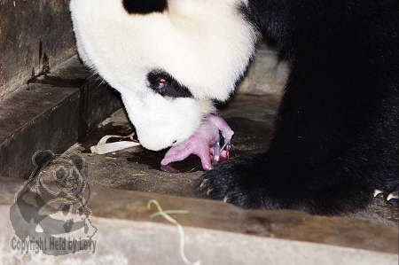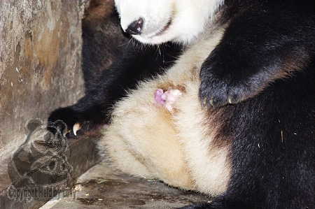 C'est la seconde fois que Guo Guo donne naissance, des jumeaux l'an dernier et un seul bébé cette année.