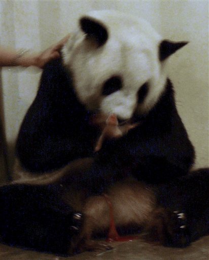 "Elle était anxieuse depuis hier. Elle ne voulait pas se rapprocher des gardiens, ni d'autres personnes, mais nous ignorions quel était le problème", a déclaré Thananpat Pongamorn (le directeur du zoo de Chiangmai), après la naissance du bébé panda.