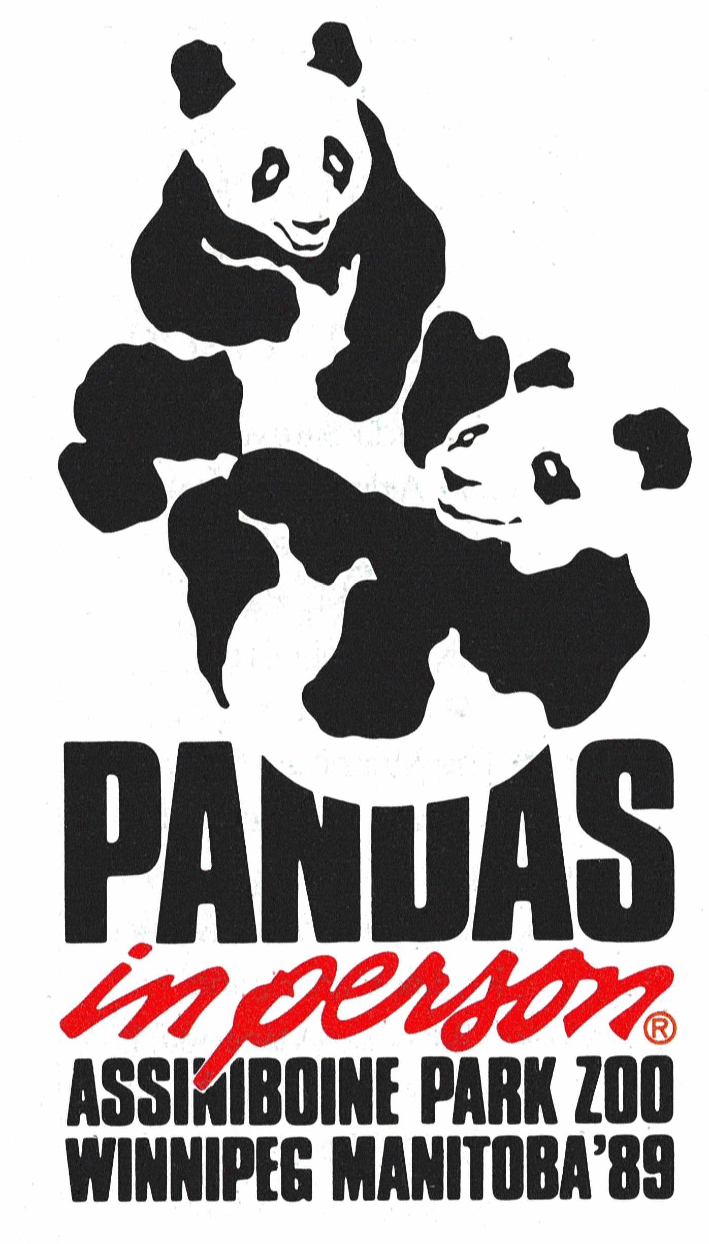 Le logo de l'événement « Pandas in person » et une photo de Bing Bing et Cheng Cheng dans leur enclos du zoo d'Assiniboine
