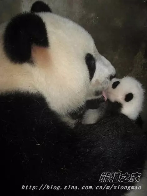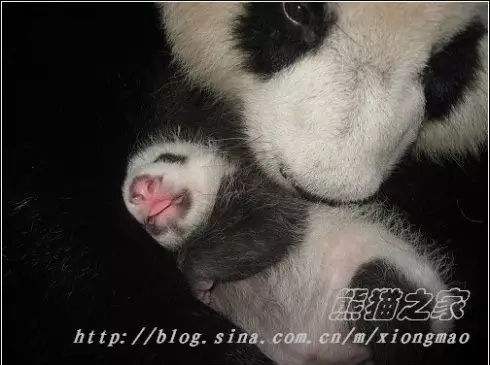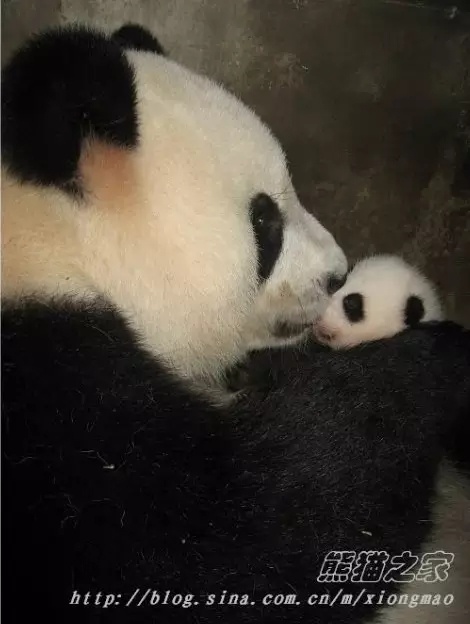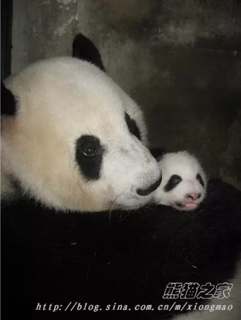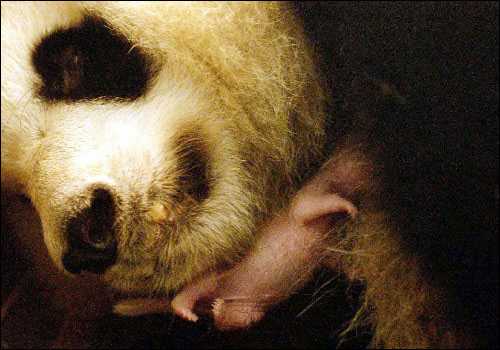 Bing Bing et Yuan Yuan (la mère de Yuan Zi) née le 1er août 2003 à 21h30 à la base de Chengdu, elle pesait 176 grammes - © CRBGPB