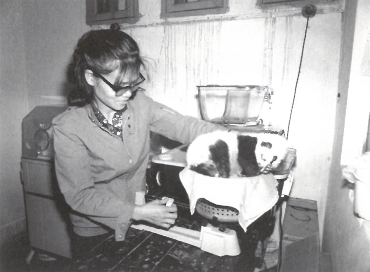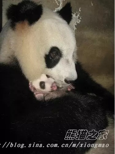 Bing Bing, alors âgée de 21 ans, lorsqu'elle a donné naissance le 30 juin 2007 à Xiang Bing, un bébé d'alors 125,5 grammes, à la base de Chengdu - © CRBGPB