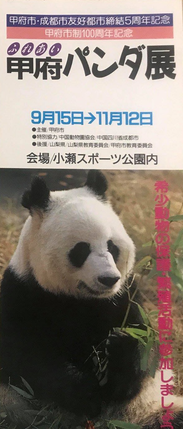 Cette même année (1989), la ville japonaise de Kofu (préfecture de Yamanashi) célébrait le 100ème anniversaire de sa fondation. Plusieurs événements ont été organisés dont la « Kofu Expo 1989 », sponsorisée par la ville et la chambre de commerce et d'industrie, dont le point d'orgue a été l'accueil de deux pandas, la femelle Bing Bing (connue sous son nom japonais « Pin Pin » ビンビン) et le mâle Dong Dong (alors nommé « Ton Ton » トントン par les Japonais) hébergés au zoo rattaché au parc Yuki. Les deux pandas, exposés du 15 septembre au 12 novembre 1989, ont attiré plus de 500 000 visiteurs. Les soigneurs allaient collecter des bambous dans les montagnes de Shikishima pour nourrir les deux animaux !