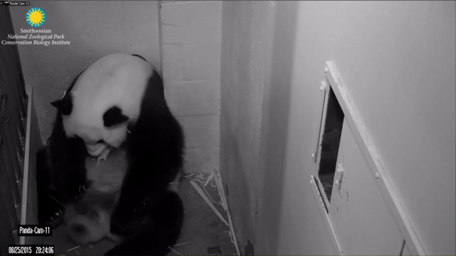 Mei Xiang et le plus petit des jumeaux (celui qui est décédé), le mardi 25 août à 20h24