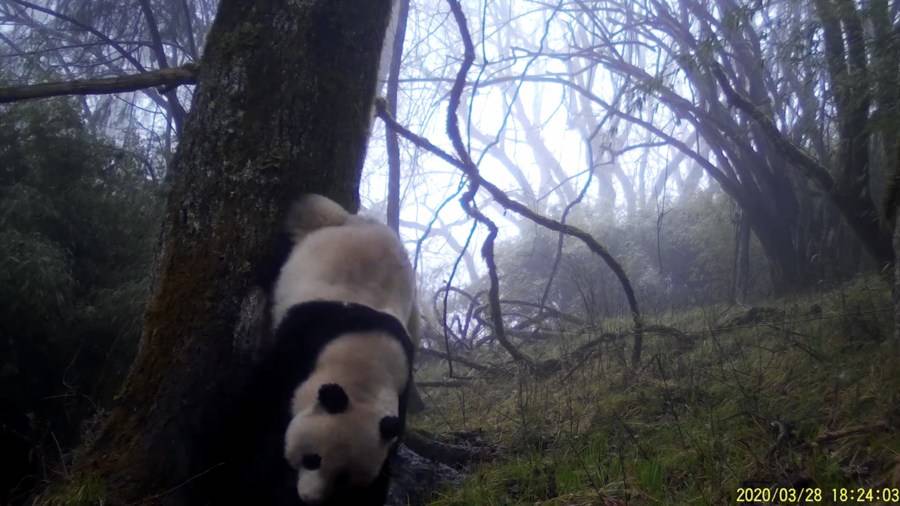 Le panda sauvage photographié le 28 mars 2020 à 18h24 dans la réserve naturelle de Baishuijiang.
