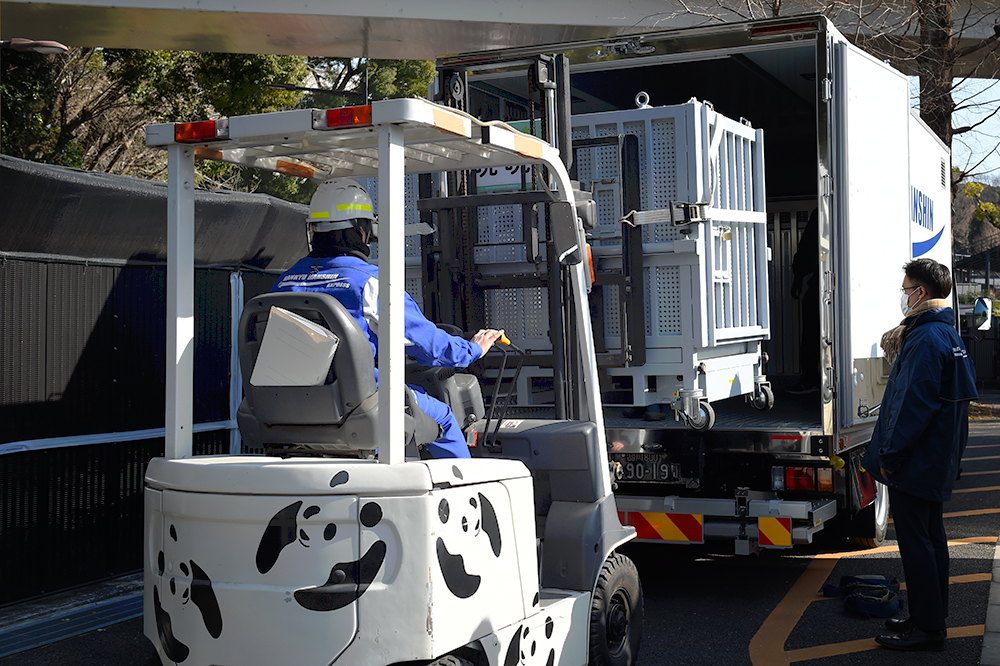 > 23 février 2011 : Bi Li et Xian Nu sont arrivés au zoo de Tokyo, au Japon