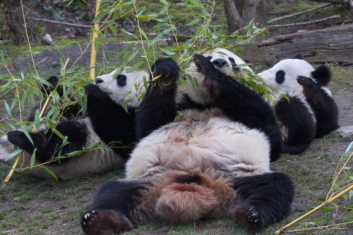 Yang Yang, Fu Feng et Fu Ban, au zoo de Schönbrunn, en janvier 2018 - © Jutta KIRCHNER