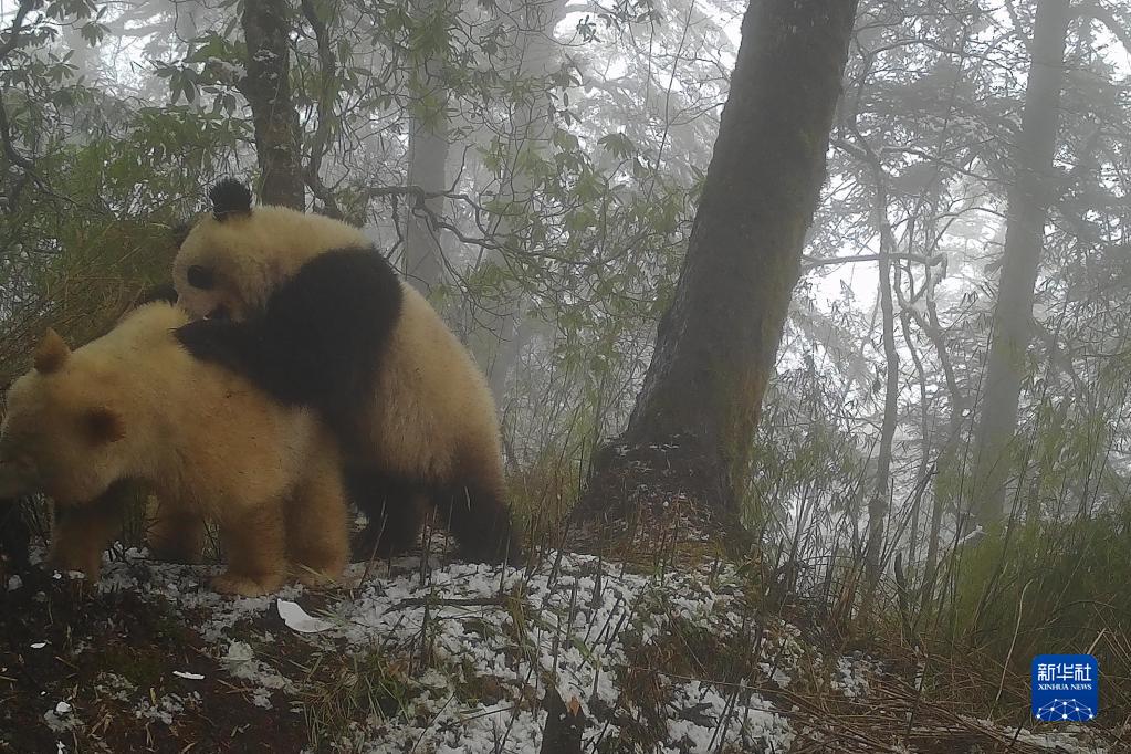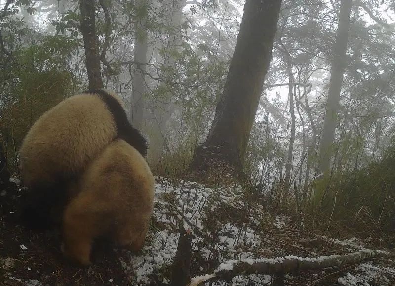 Fin février 2023, un des pièges photographiques a capturé une scène où une mère panda est dans le creux d'un arbre (peut-être une tanière),