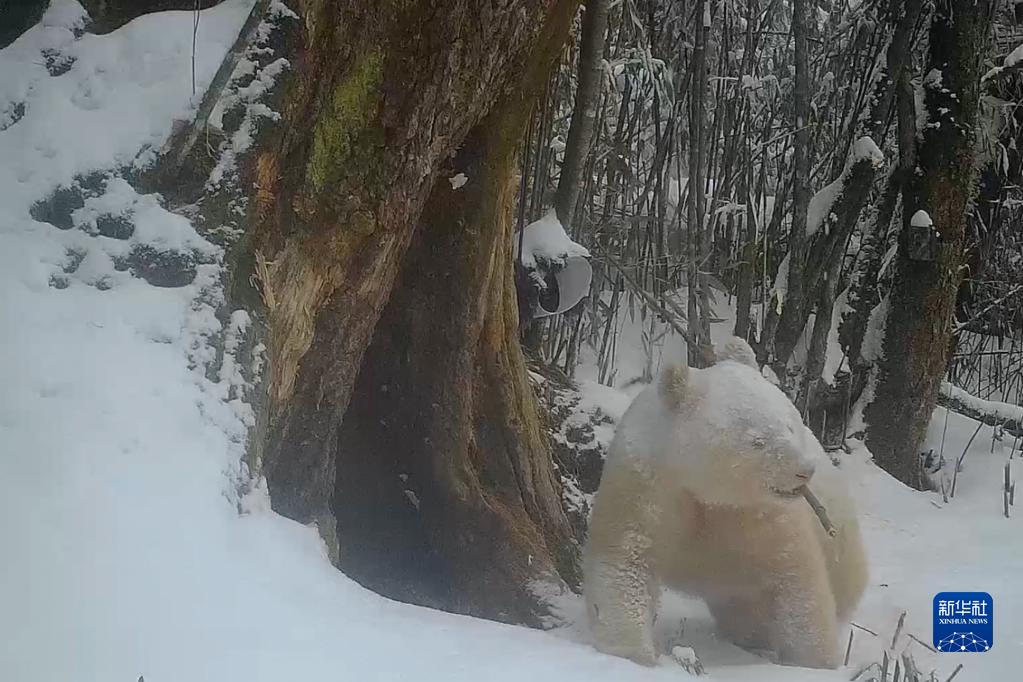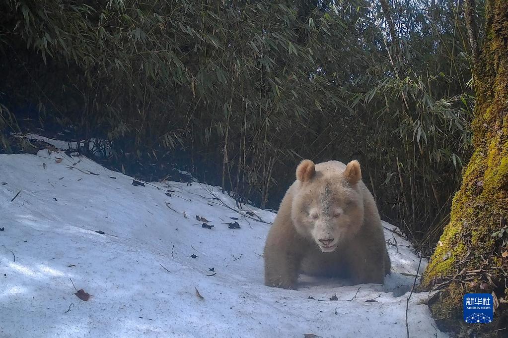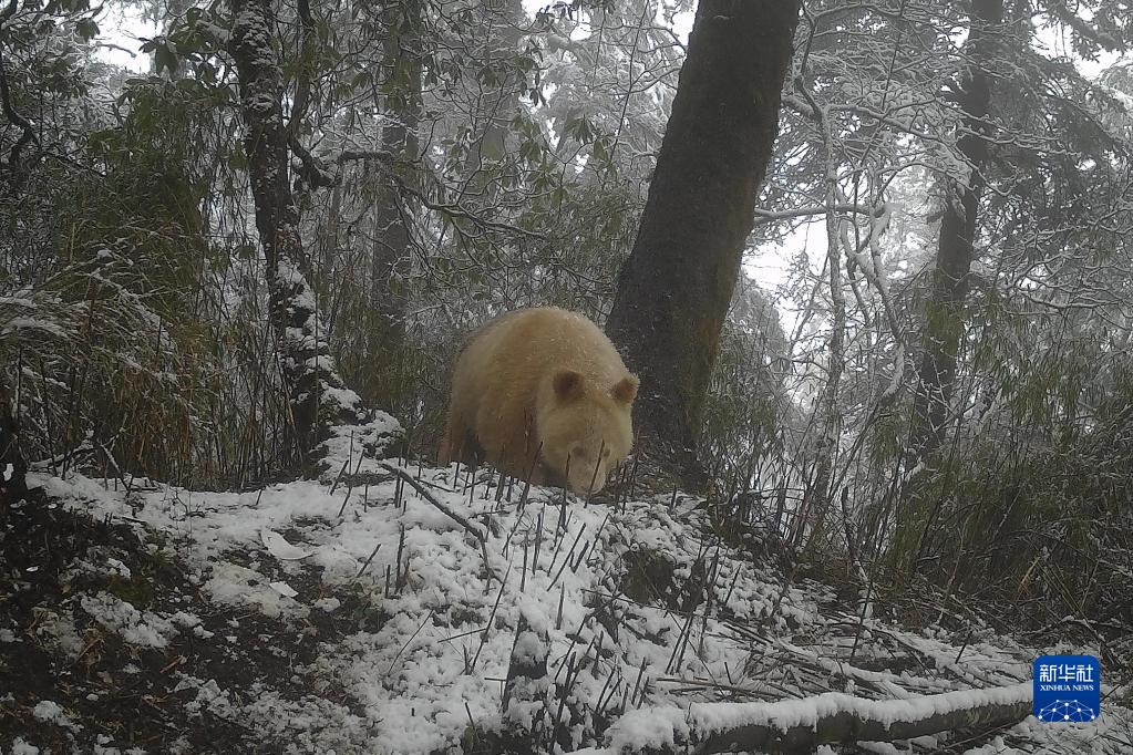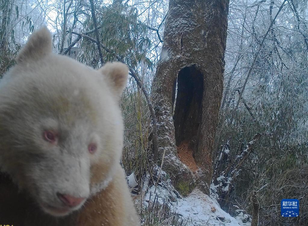 Nouveaux clichés dans la réserve naturelle de Wolong de l'unique panda sauvage albinos connu