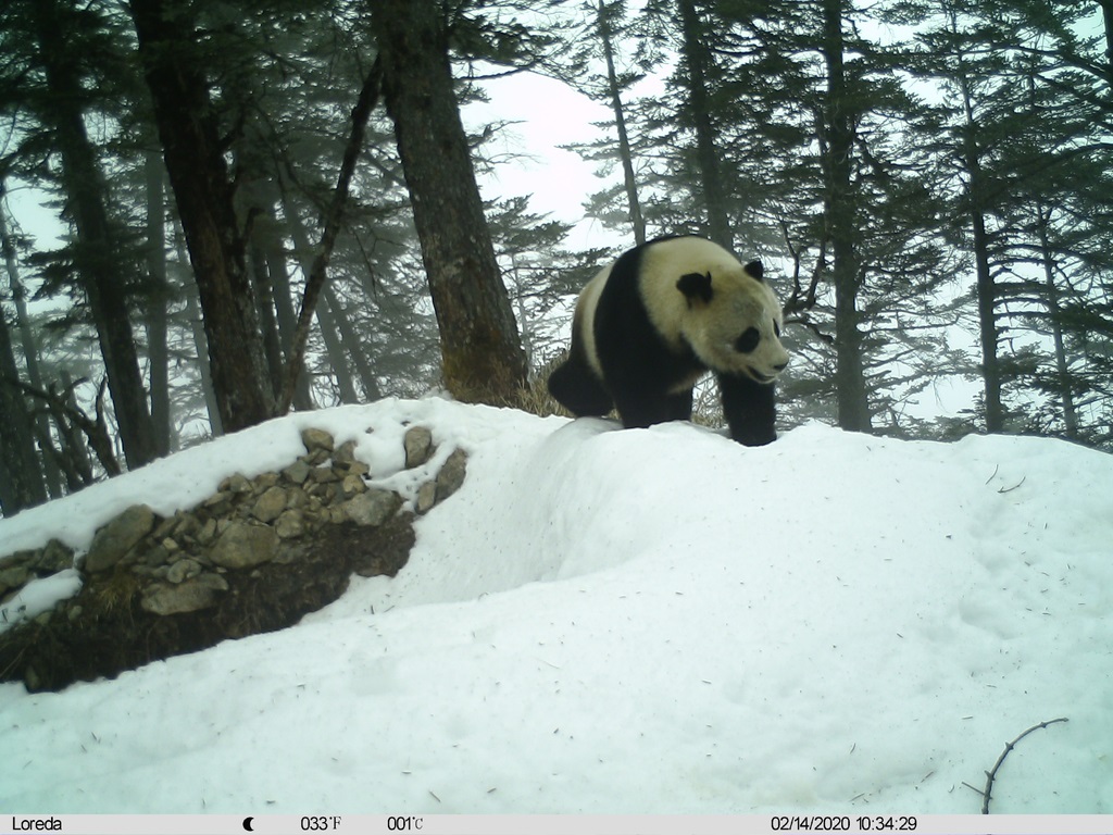 Un panda géant photographié le 14 février 2020 à 10h34 dans la réserve naturelle d'Anzihe, par le même