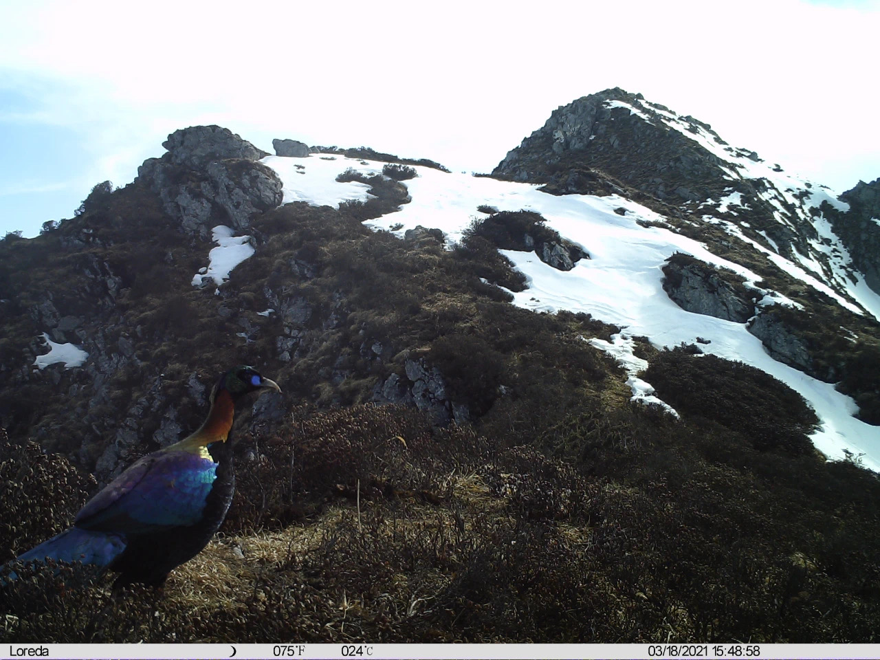 Un lophophore de Lhuys (Lophophorus lhuysii) photographié le 18 mars 2021 dans la réserve naturelle d'Anzihe