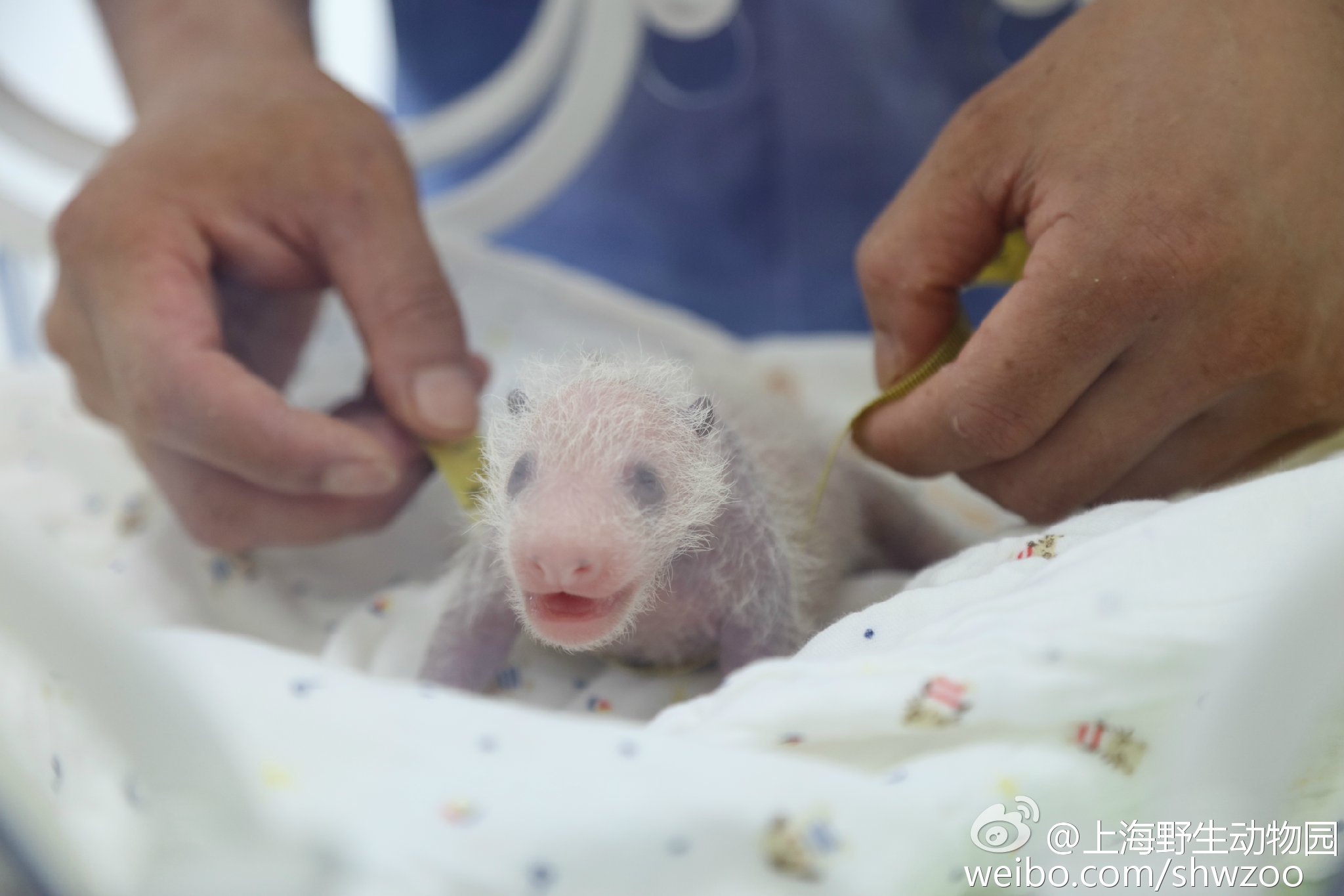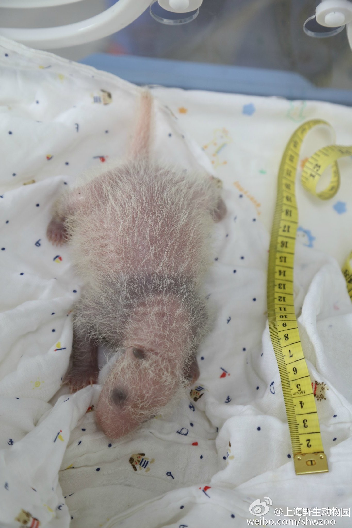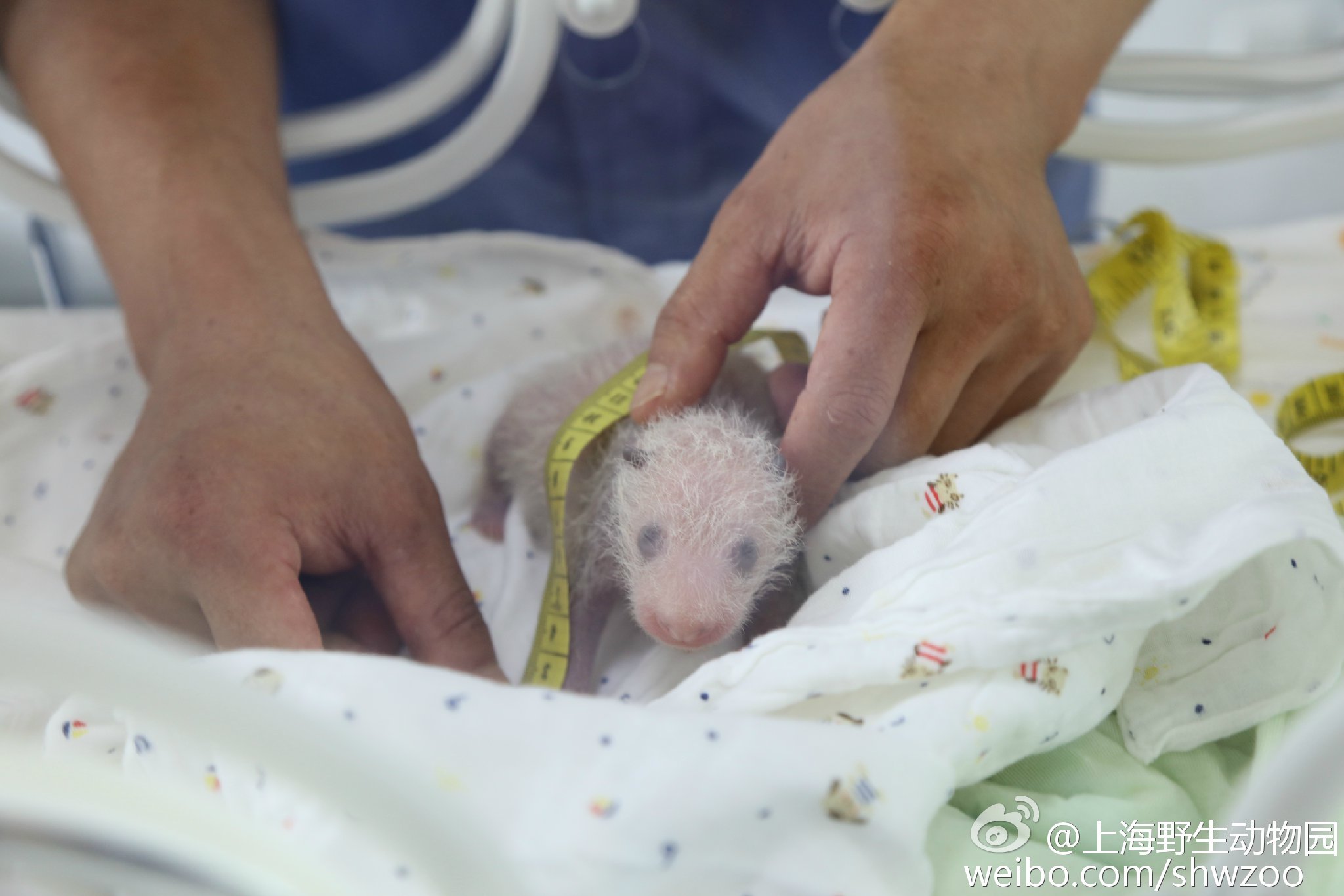 C'est ainsi que Guo Guo, âgée de presque 20 ans, a donné naissance à un petit le 9 juillet dernier à 11h42 au Shanghai wild animal park. C'est la première fois que cet établissement zoologique enregistre une naissance de panda géant. Le premier examen vétérinaire, pratiqué le lendemain, a montré qu'il s'agissait d'une femelle de 151 grammes pour 14,3 centimètres. Un nouvel examen le 17 juillet a montré qu'elle était en parfaite santé et qu'elle pesait dorénavant 303 grammes et qu'elle mesurait 24 centimètres. Guo Guo, expérimentée, s'occupe avec soin de sa petite et elle est sous surveillance continue de ses soigneurs via un système de vidéo-surveillance.