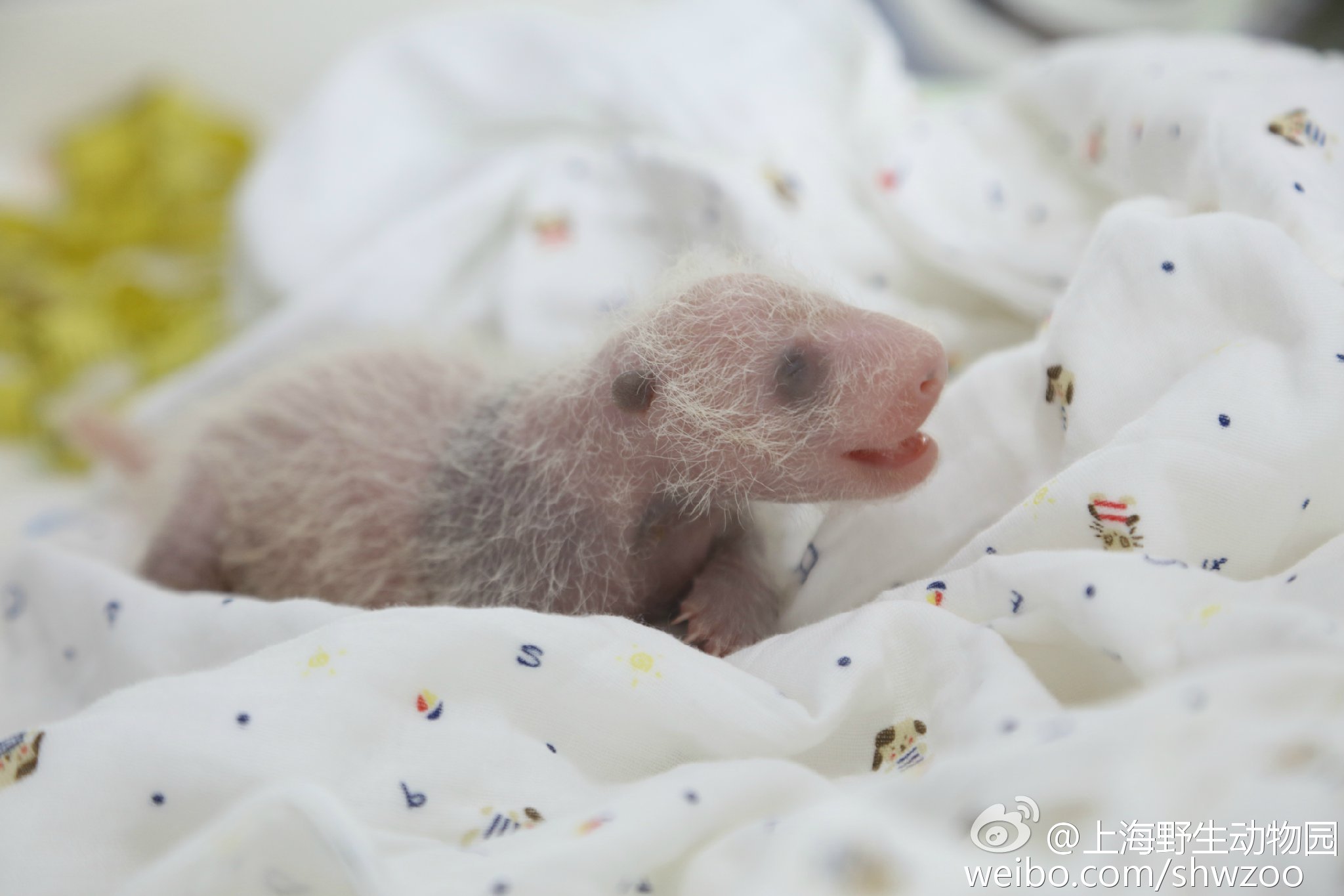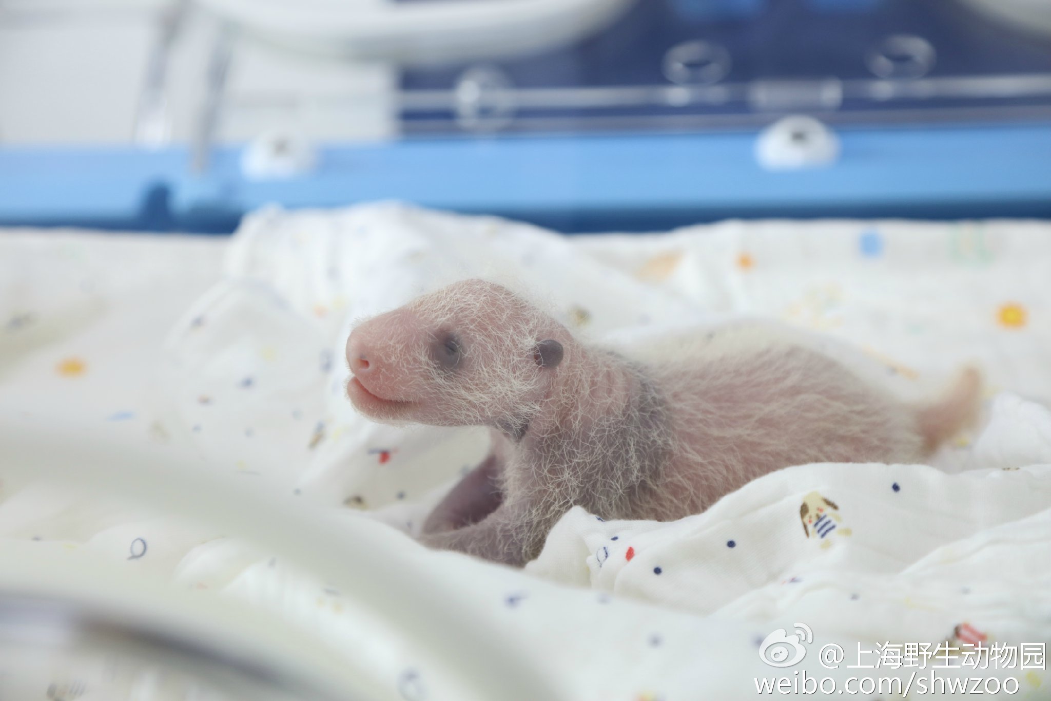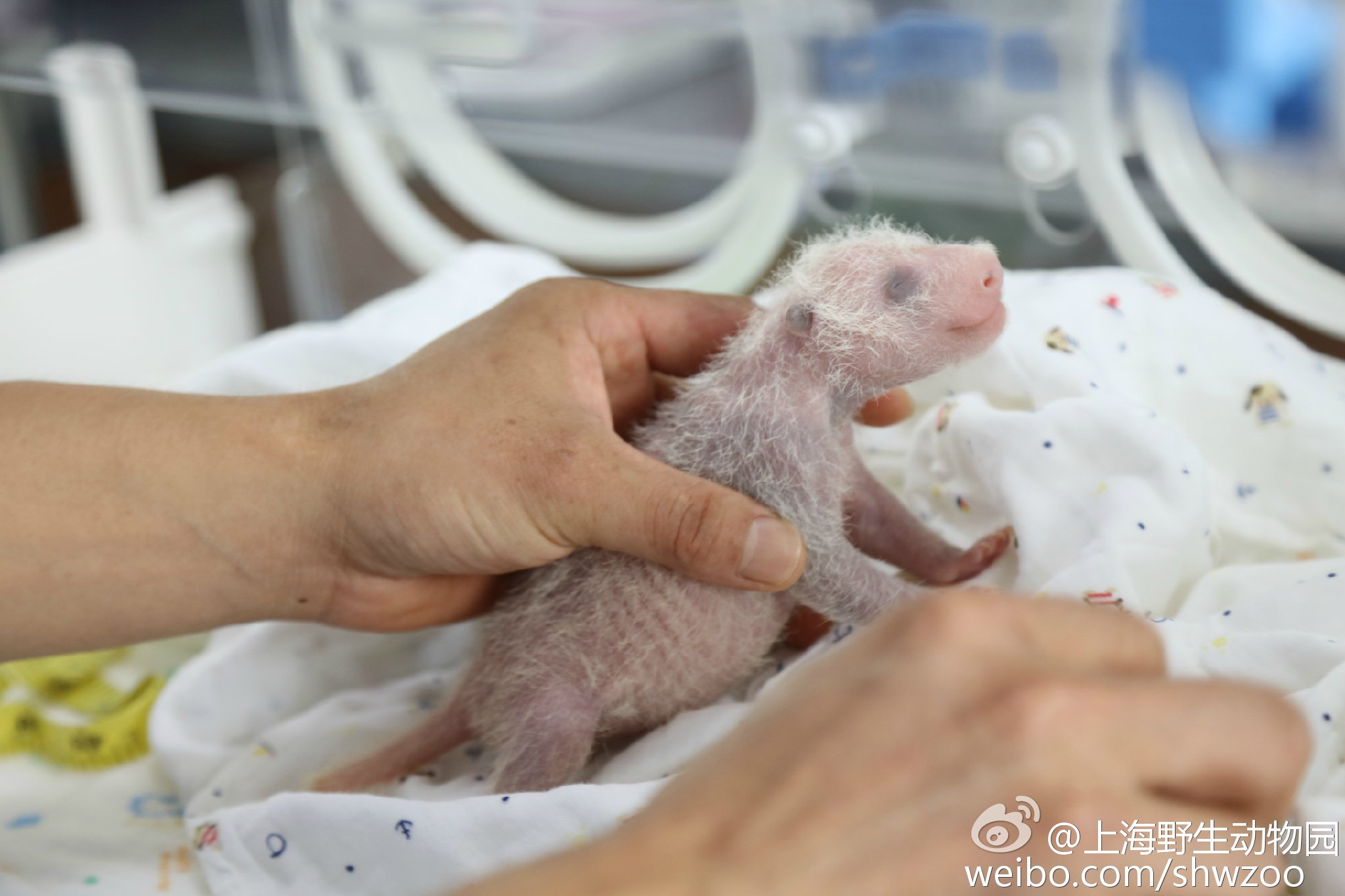 C'est ainsi que Guo Guo, âgée de presque 20 ans, a donné naissance à un petit le 9 juillet dernier à 11h42 au Shanghai wild animal park. C'est la première fois que cet établissement zoologique enregistre une naissance de panda géant. Le premier examen vétérinaire, pratiqué le lendemain, a montré qu'il s'agissait d'une femelle de 151 grammes pour 14,3 centimètres. Un nouvel examen le 17 juillet a montré qu'elle était en parfaite santé et qu'elle pesait dorénavant 303 grammes et qu'elle mesurait 24 centimètres. Guo Guo, expérimentée, s'occupe avec soin de sa petite et elle est sous surveillance continue de ses soigneurs via un système de vidéo-surveillance.