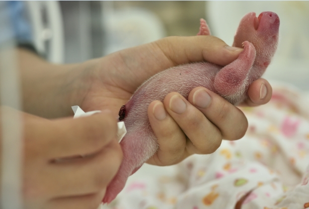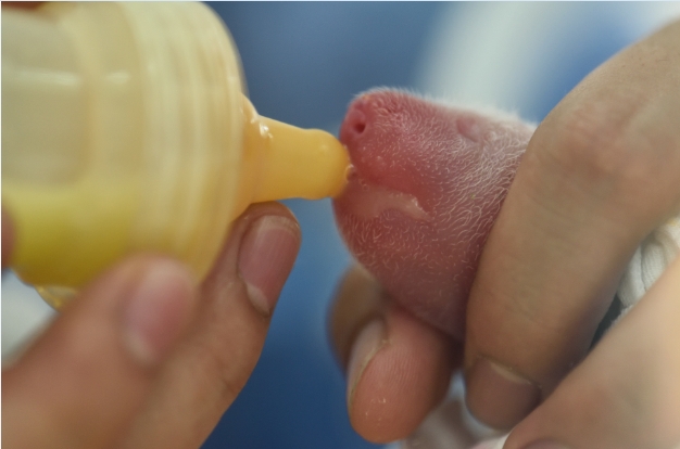 Qian Qian ne pourra s'occuper que d'un seul petit à la fois, l'autre sera nourri