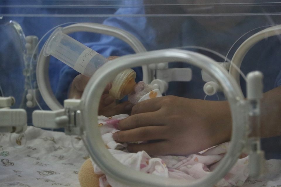 Fei Fei et l'un de ses jumeaux, le jour de la naissance - 22 août 2015 - © Heng Yi