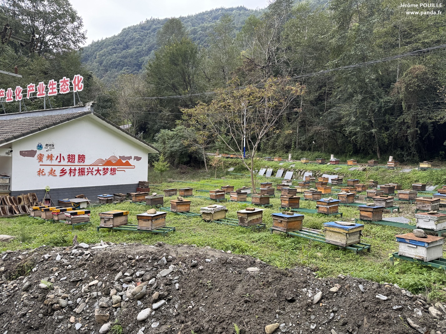 L'apiculture est un mode d'agriculture plus durable moins consommateur de terres et qui impose une bonne qualité environnementale pour avoir des abeilles ; ici quelques kilomètres au sud de l'entrée de la réserve de Laohegou, dans le village de Gaocun - 27 octobre 2025 - © Jérôme POUILLE