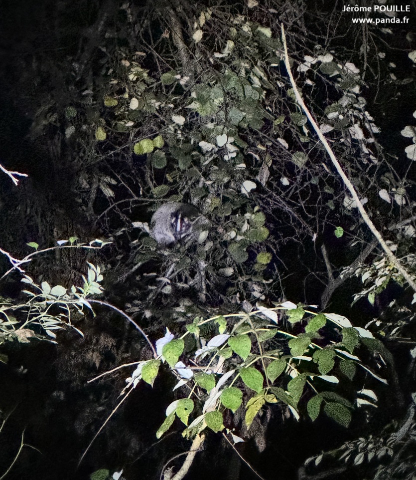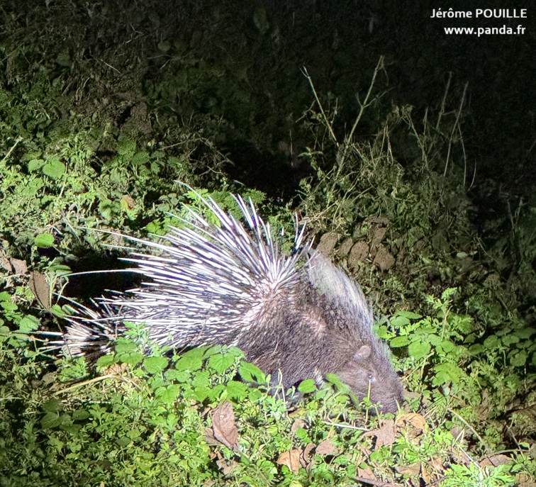 Quelques-unes des observations nocturnes, dans l'ordre : un porc-épic, un rongeur et une civette palmiste à masque - 27 octobre 2025 - © Jérôme POUILLE