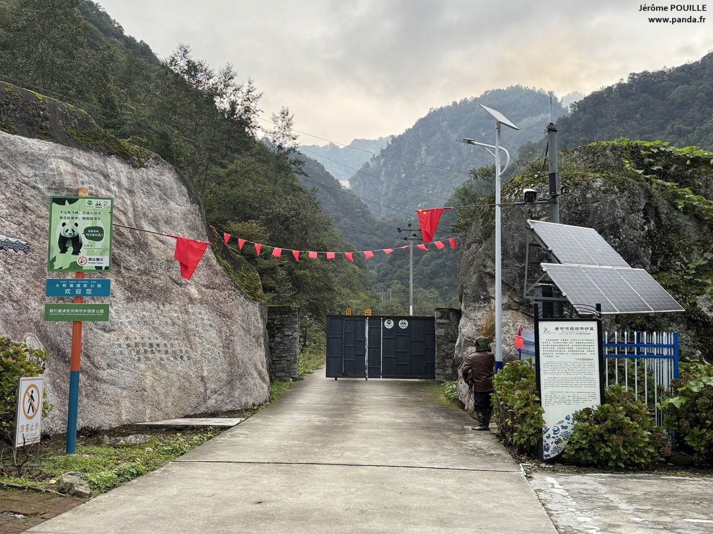 J’ai eu l’opportunité de découvrir la réserve naturelle de Laohegou accompagné des deux guides Mme Che Yan (车燕) et M. Fan Guiguo (范贵国) le lundi 27 octobre 2025. Il n'est d'ailleurs pas possible pour les visiteurs de randonner dans cette réserve sans être accompagnés d'un guide certifié. En outre, le nombre de visiteurs quotidiens est limité et des navettes électriques conduisent les visiteurs depuis l'entrée située à Shuangshitou. La quasi-totalité de la réserve constitue un habitat du panda géant d'après le plus récent recensement (le quatrième mené de 2011 à 2014).