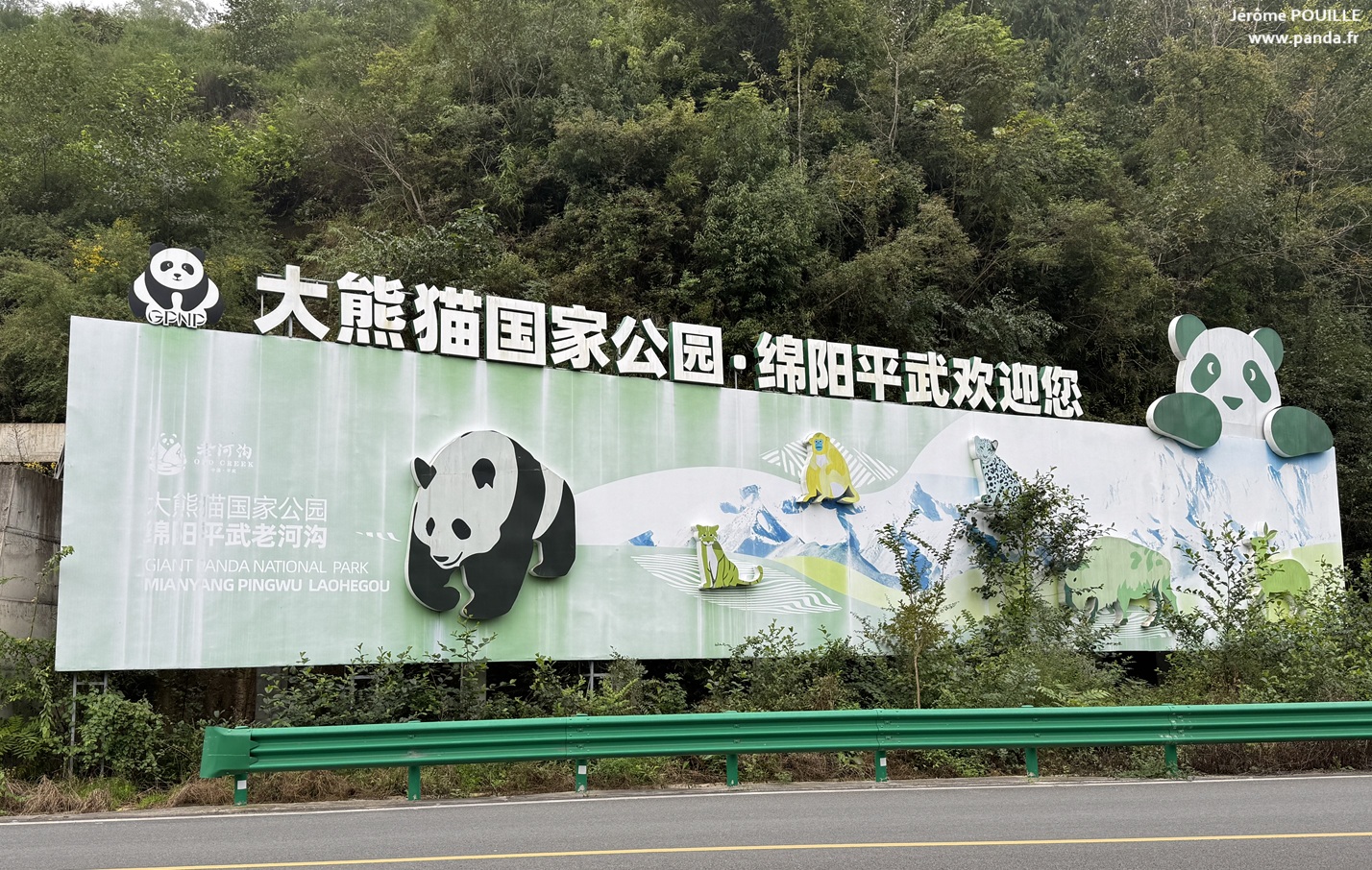 Après le péage d'autoroute, le parc national du panda géant souhaite la bienvenue sur la route qui conduit à Laohegou - 28 octobre 2025 - © Jérôme POUILLE