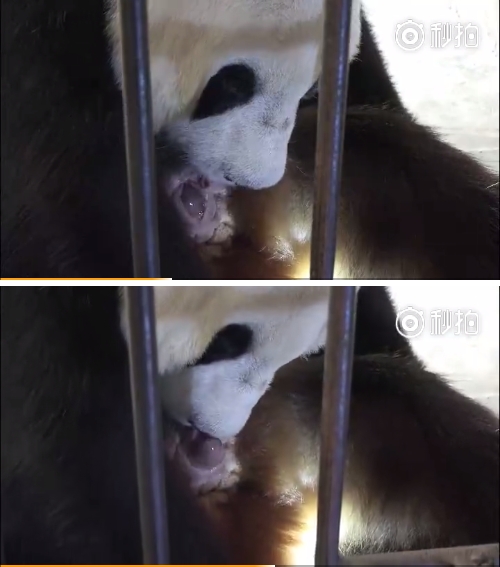 Yang Yang est en train de mettre bas à son petit, le 11 juin 2017