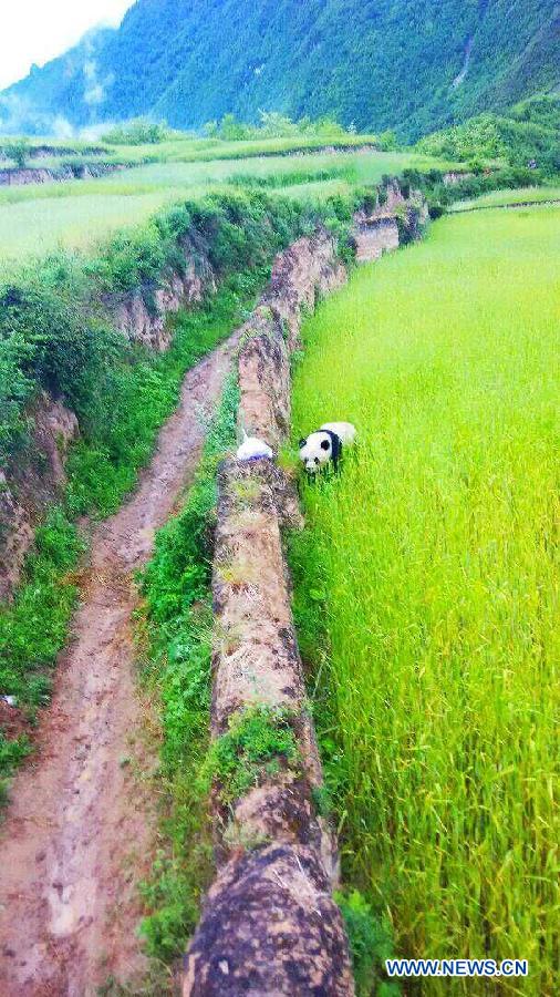 Deux clichés du panda aperçu dans le village de E'er le 28 mai 2015