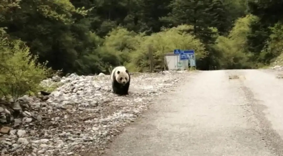 Un panda sauvage observé sur une route de la réserve naturelle de Wanglang