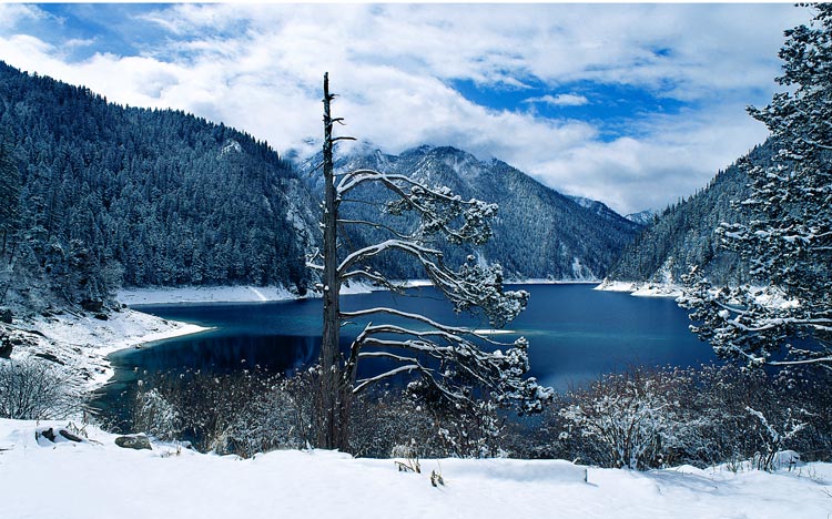Le genévrier de Chine garni d'un seul côté, une des attractions au bord du lac de Changhai - © Jiuzhaigou