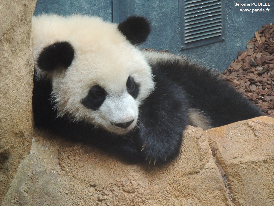 Yuan Meng affectionne la partie supérieure gauche de son enclos intérieur où il alterne