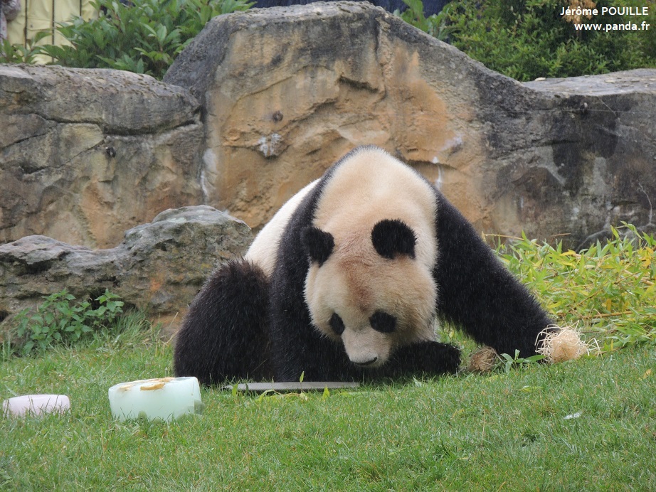 Il est revenu plus tard dans la matinée se délecter des fruits peu à peu libérés de la glace même si la température en ce mercredi 4 août 2021 était loin d'être caniculaire ! Joyeux anniversaire Yuan Meng !